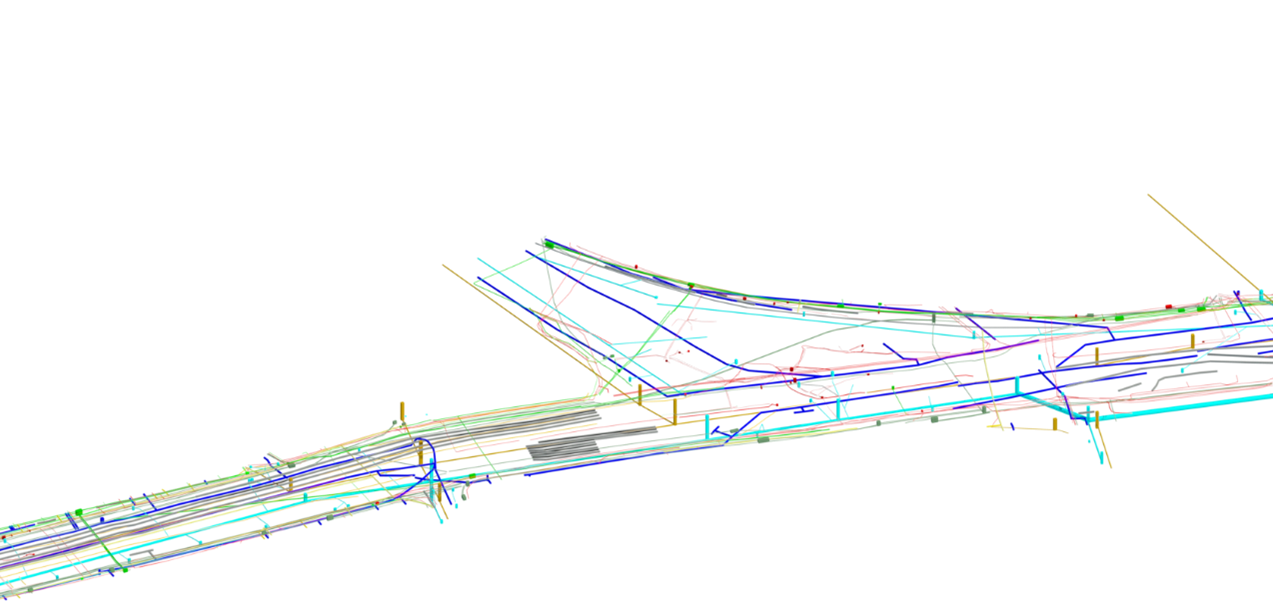 Approach and Methodology: The project involved extensive surveying along an active urban highway. A high-definition 3D laser scan using the Leica RTC360 was conducted to capture precise site conditions, supplemented by traditional survey techniques and the establishment of a robust survey control network. For underground utility mapping, our PAS128 QL-B M3P survey utilised Vivax Vloc 3 Pro CAT and the advanced Leica Stream UP vehicular-mounted multi-array Ground Penetrating Radar (GPR) system.